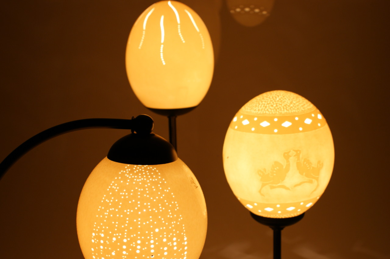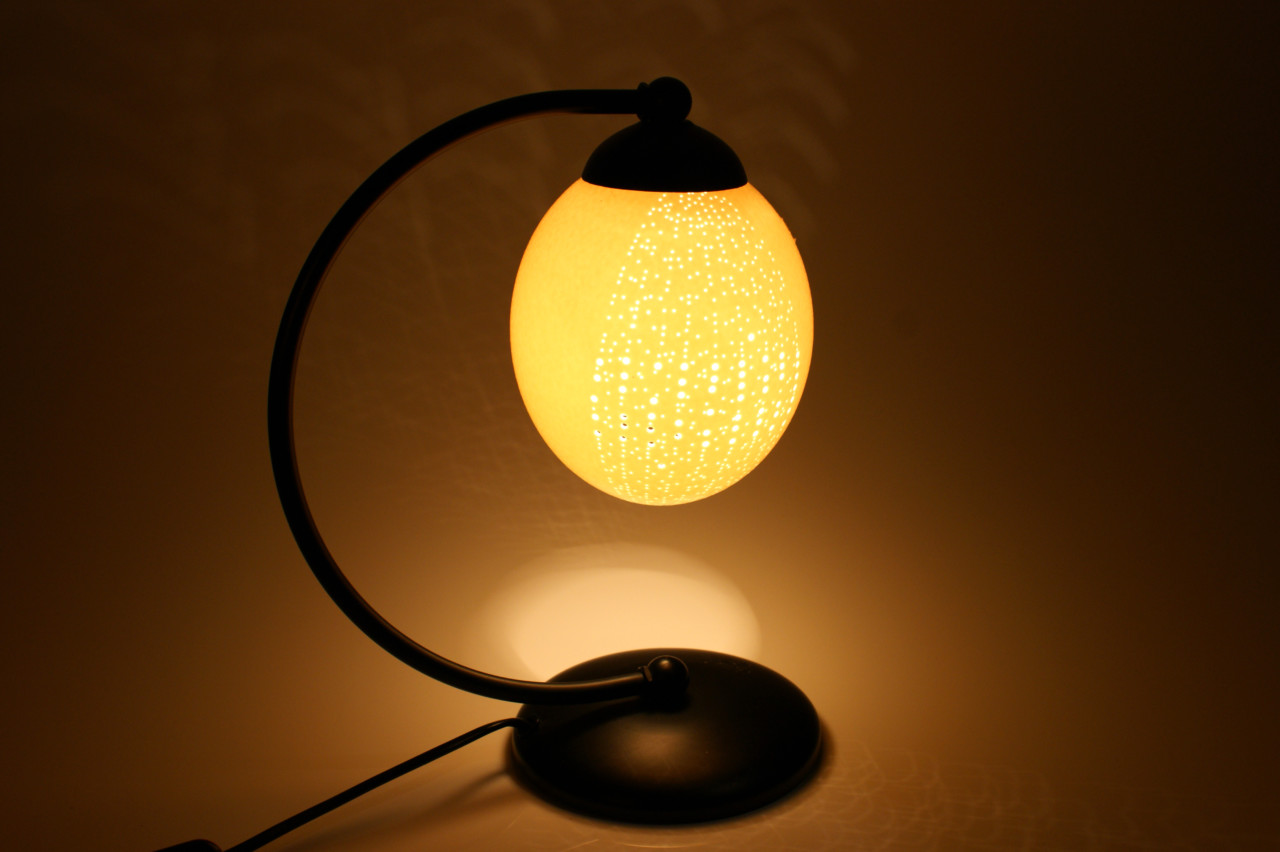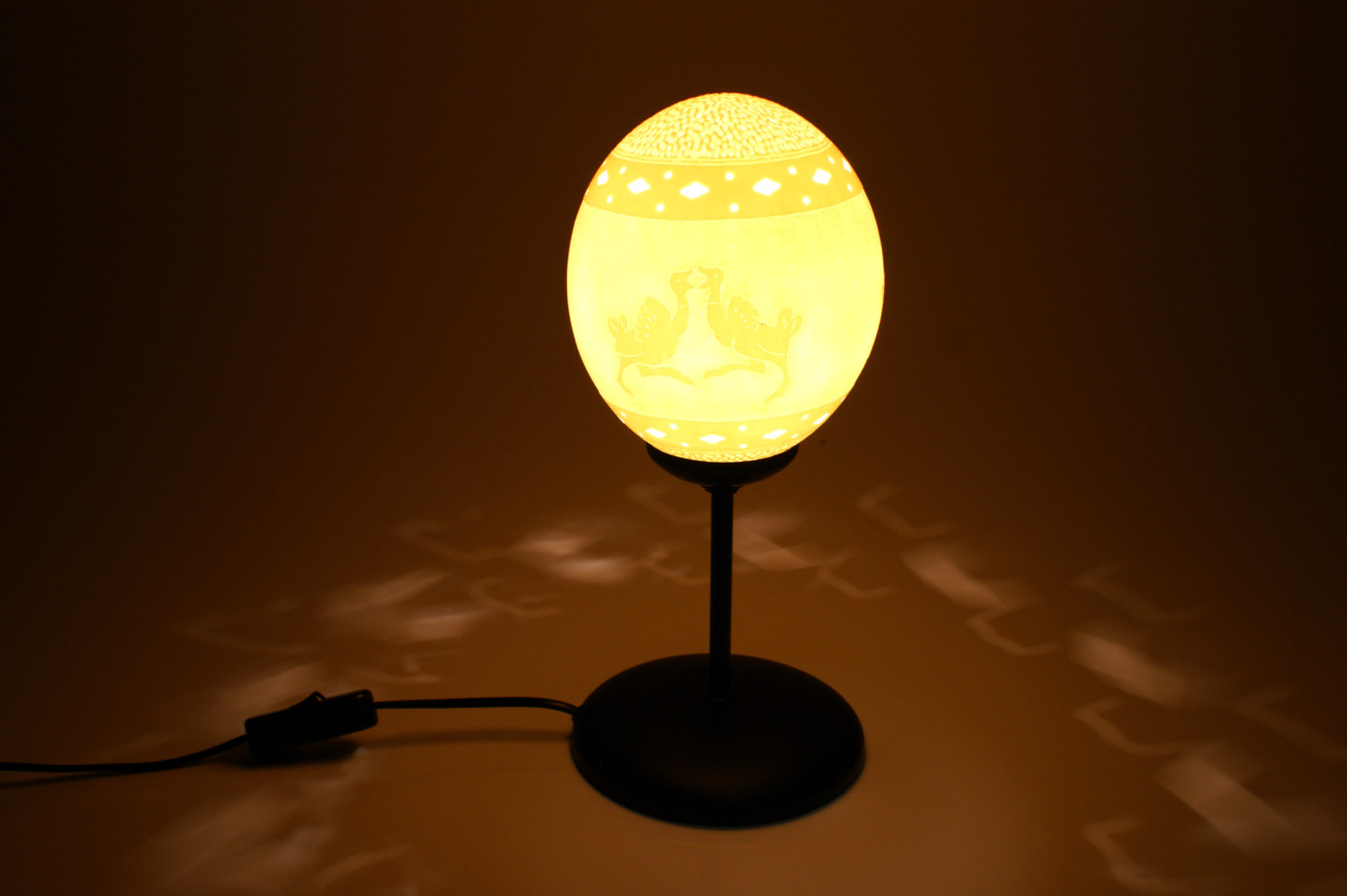 Mit etwas Geschick können Sie aus einem Straußenei eine wunderschöne Lampe herstellen oder bei uns fertig kaufen.