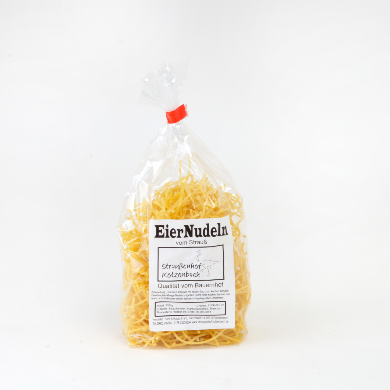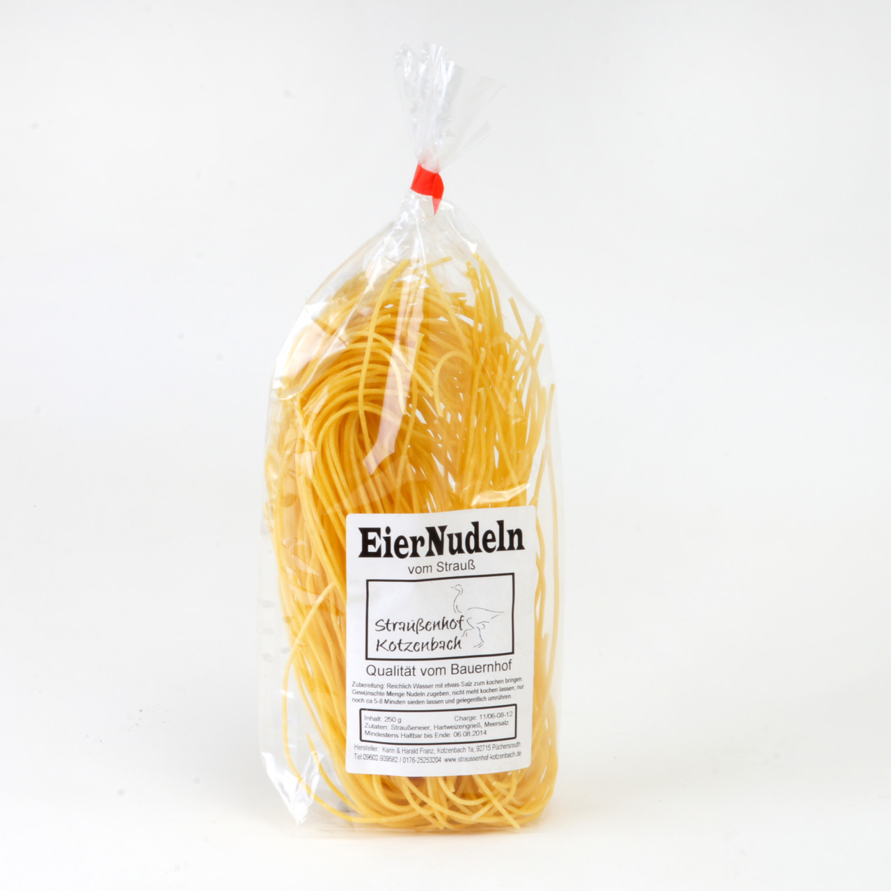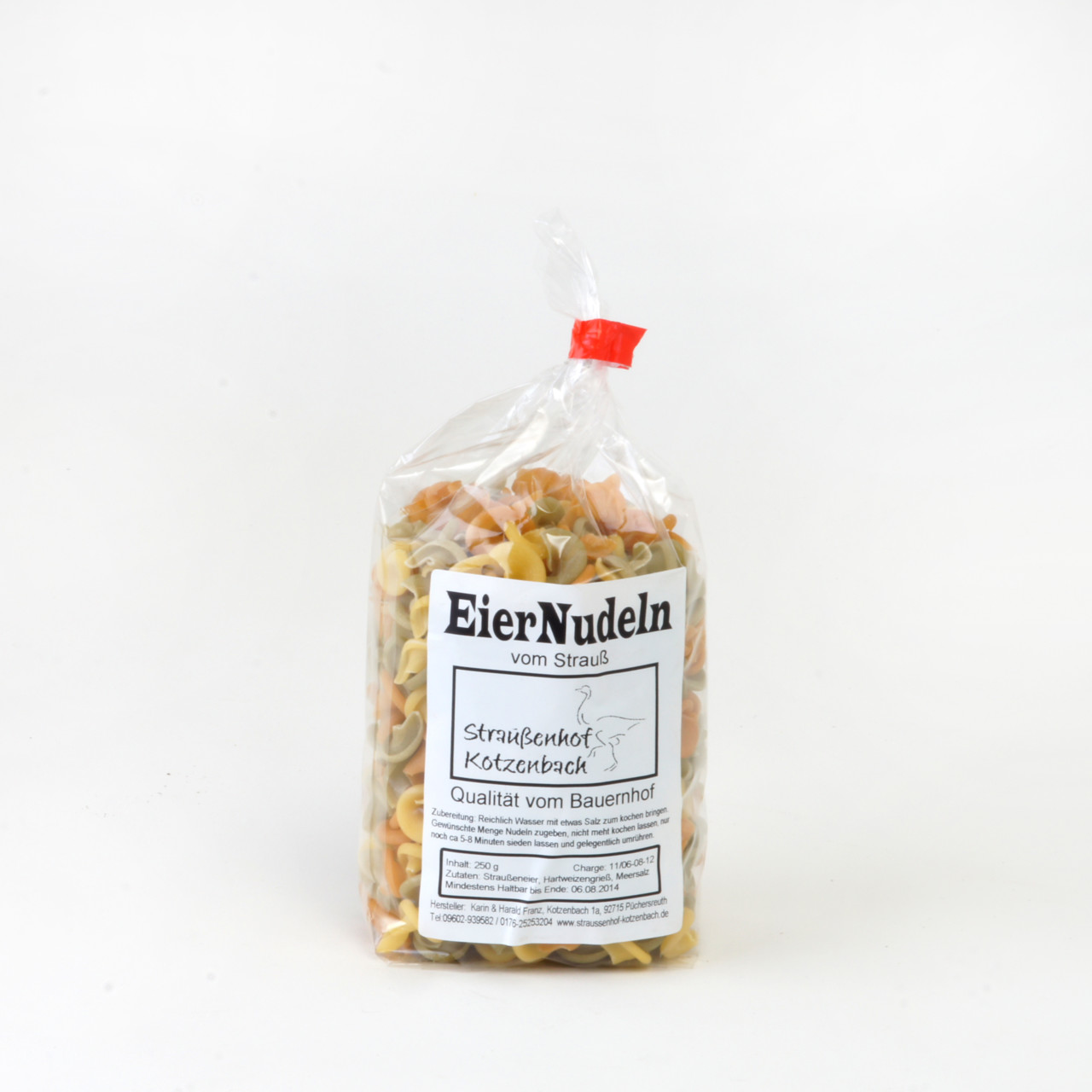 Geschmacklich ebenso einzigartig wie alle anderen Produkte vom Strauß. Unsere Nudeln sind in 250 gr. Tüten abgepackt.