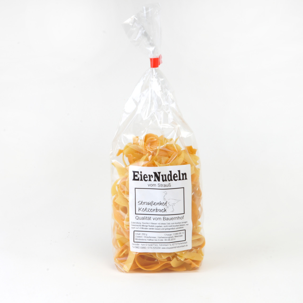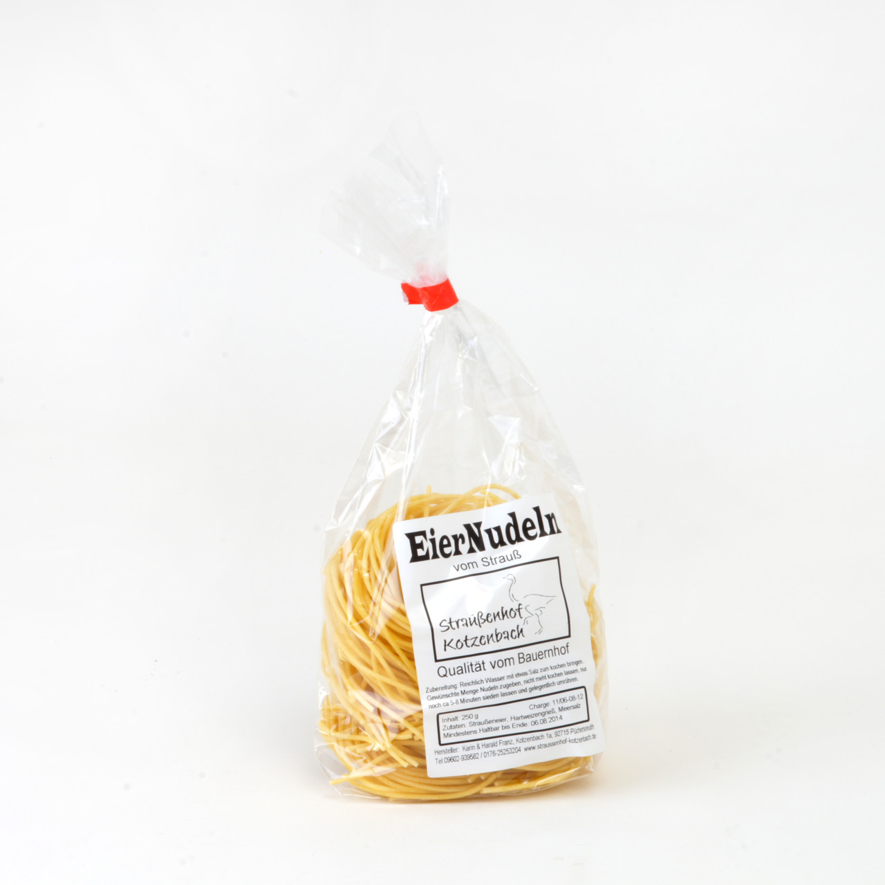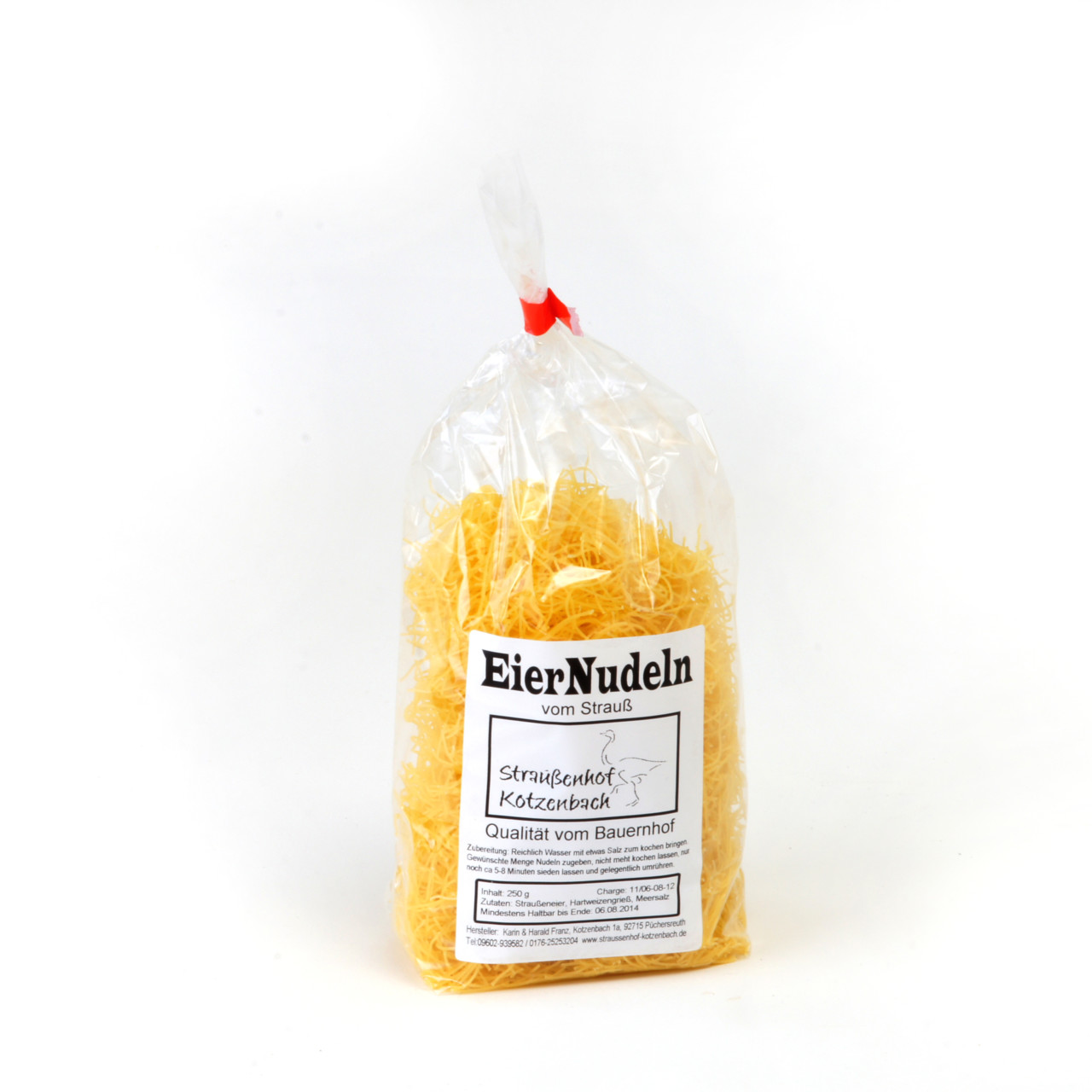 Geschmacklich ebenso einzigartig wie alle anderen Produkte vom Strauß. Unsere Nudeln sind in 250 gr. Tüten abgepackt.