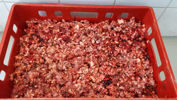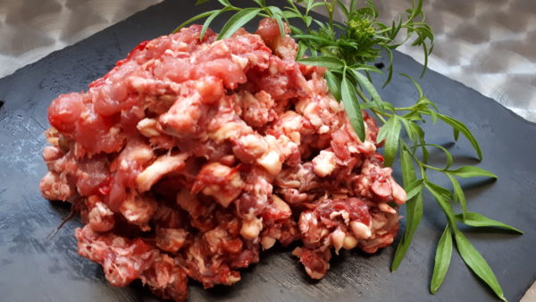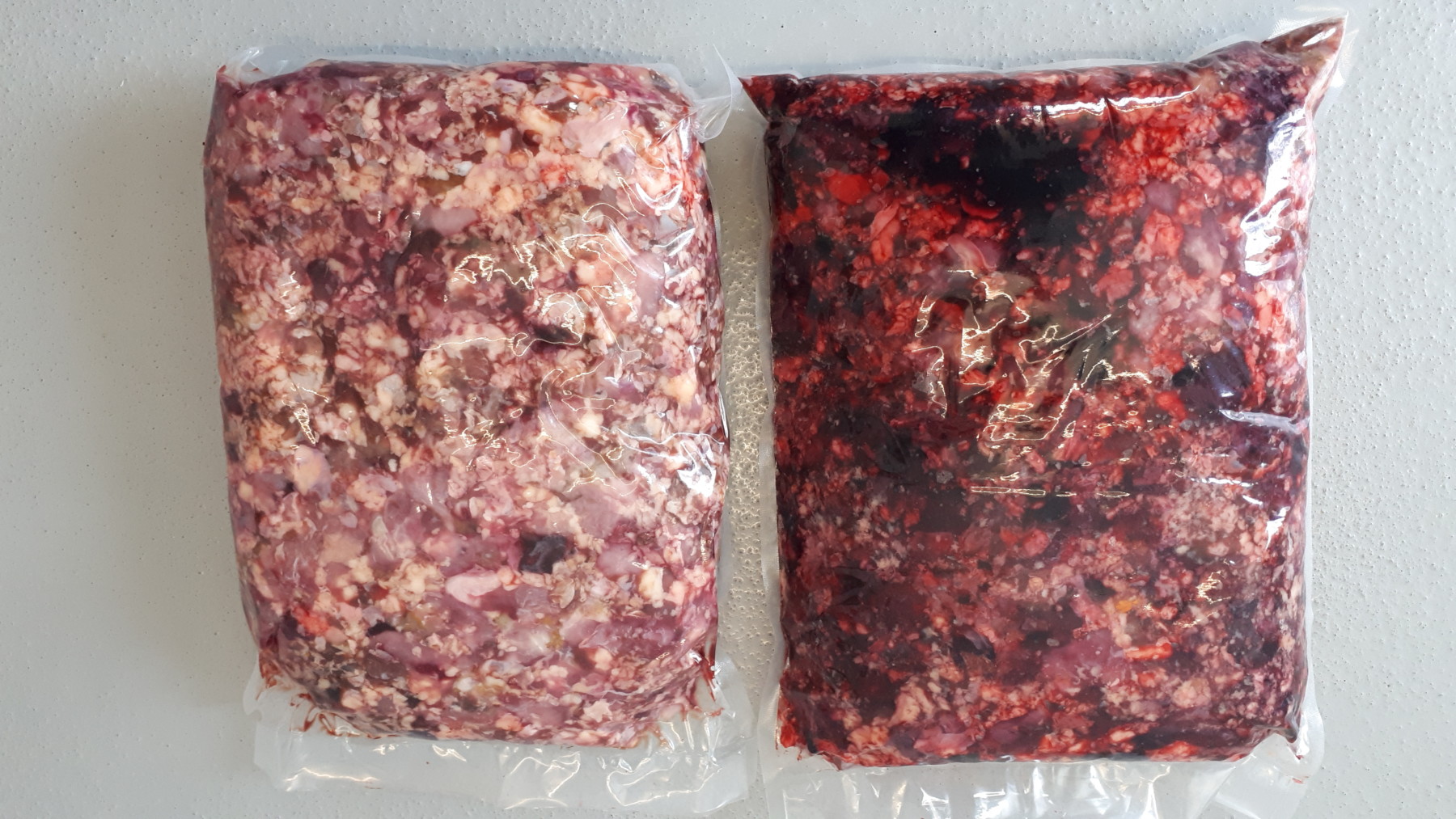 Im Rohzustand grob gewolft abgepackt und tiefgefroren.