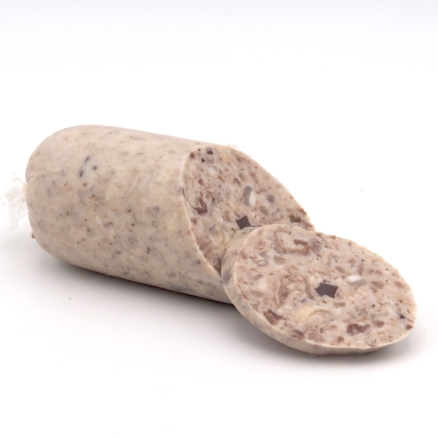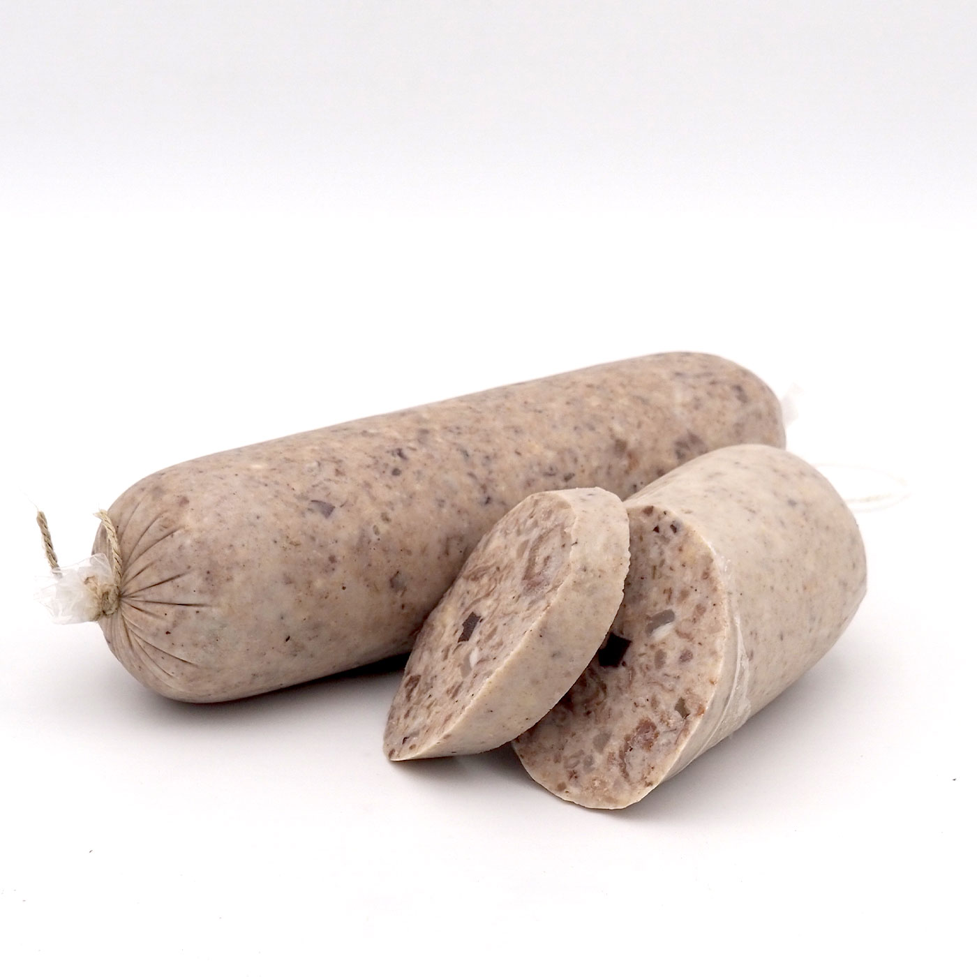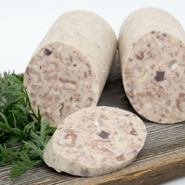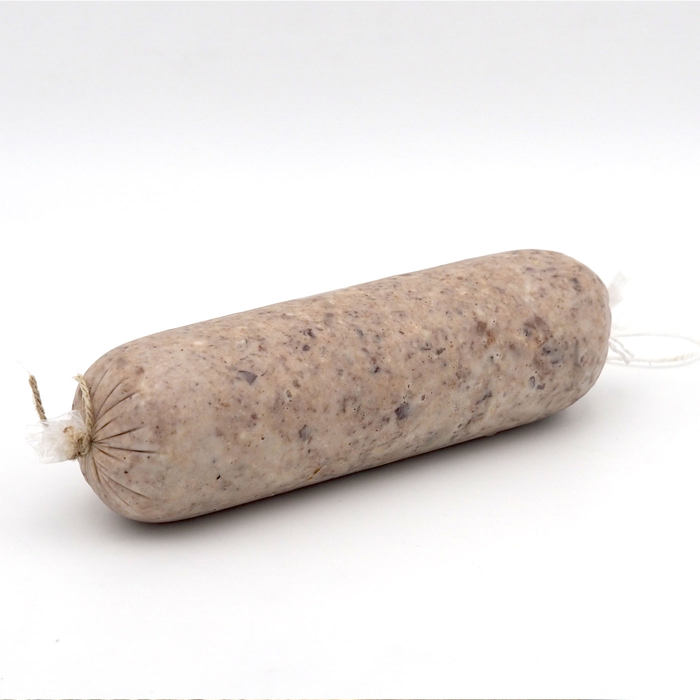 Unsere hauseigene Hundewurst vom Strauß wird gekocht, gekuttert und in Kunstdarm abgefüllt, somit ist sie lange haltbar und zudem eine super Ergänzung zu normalem Trockenfutter.