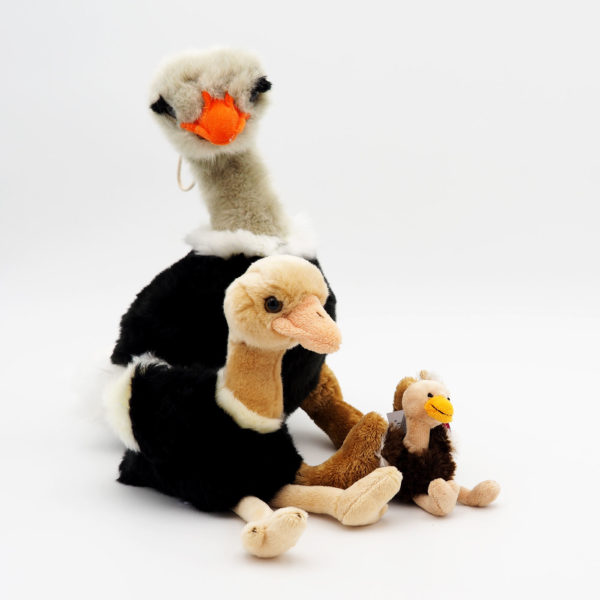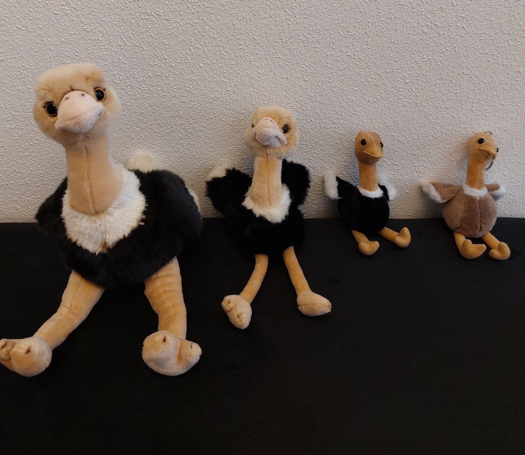 Plüschtier Strauß schwarz klein (ca. 18 cm), Plüschtier Strauß braun klein (ca18cm), Plüschtier Strauß mittel (ca. 28 cm), Plüschtier Strauß groß (ca. 36 cm)
