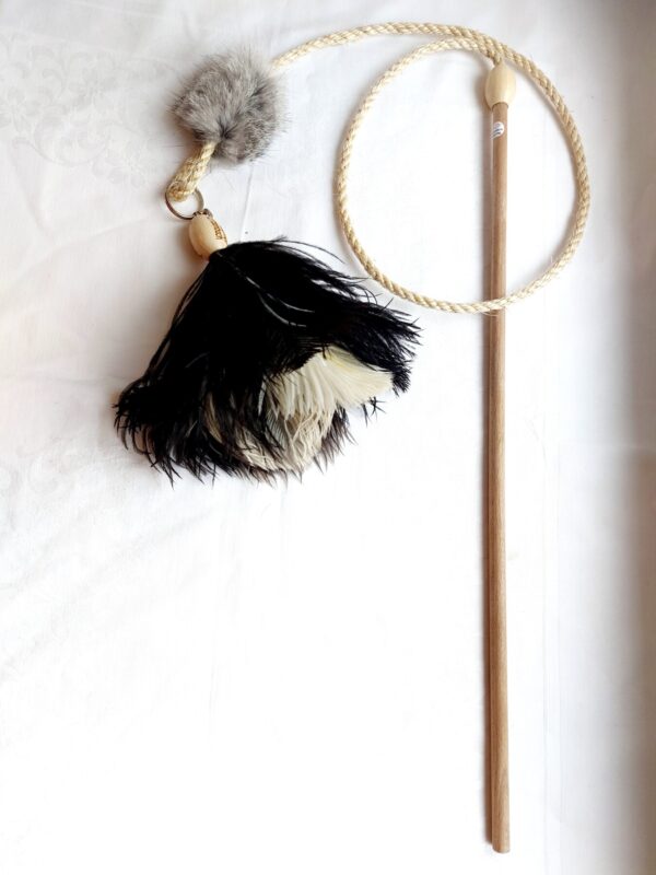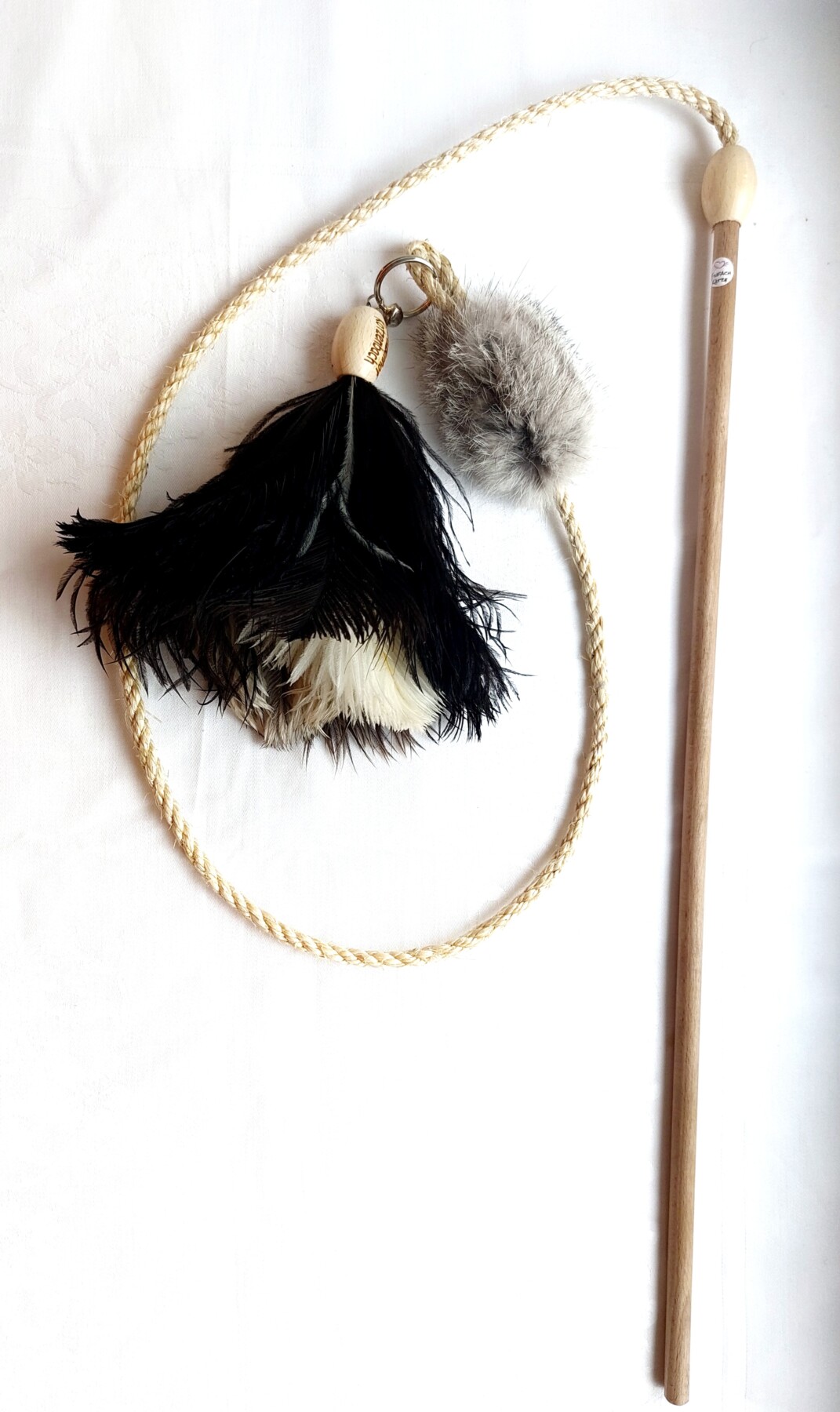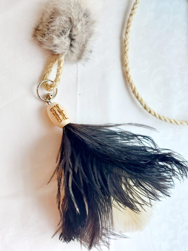 Die Katzenangel ist besonders robust und besitzt eine Kombination aus echtem Kaninchenfell und natürlichen Straußenfedern.