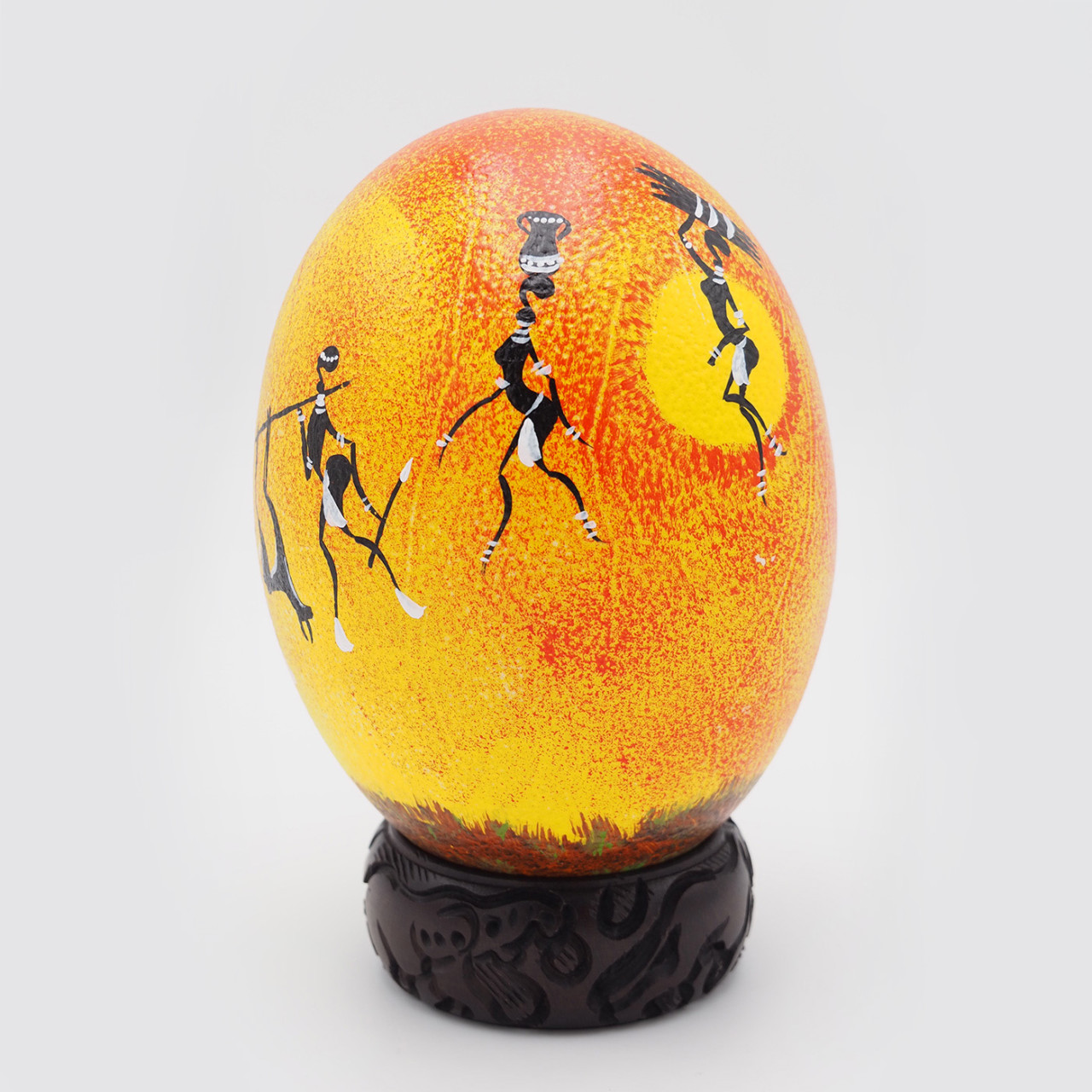 Wunderschönes Straußenei mit afrikanischem Motiv aus Serviettentechnik (Decoupage). Der dekorative Holzring ist nicht Bestandteil der Lieferung, kann jedoch separat mit bestellt werden.