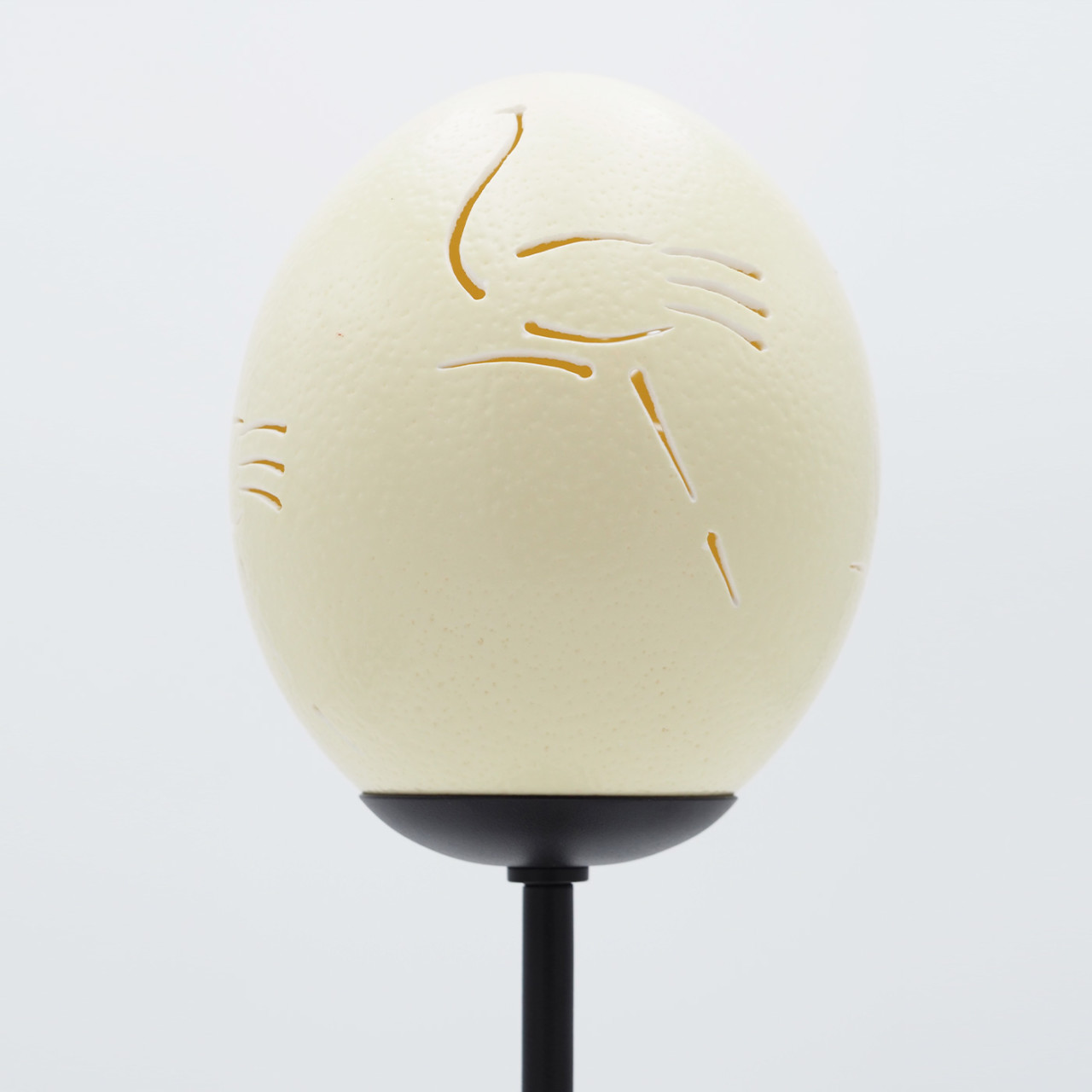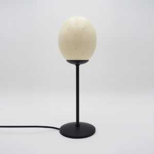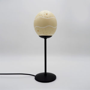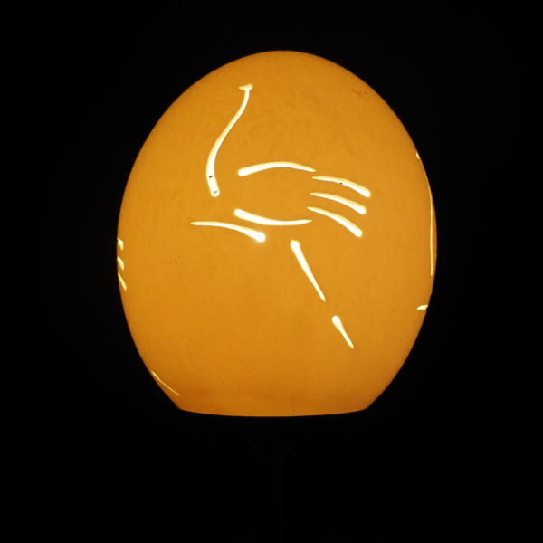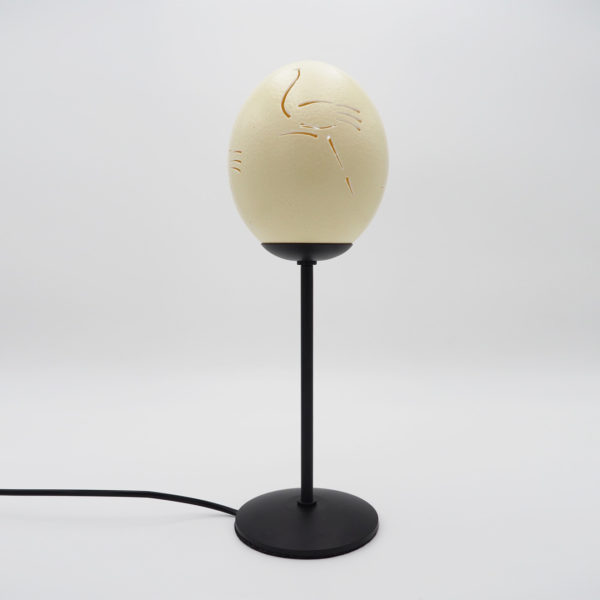 Bei dieser Lampe erkennt man sicher, dass es sich um ein Straußenei handelt. Das Motiv Strauß ist in feinen Linien auf dem Ei angebracht. Durch die Öffnungen des Motivs scheint das warme Licht dann nach draußen und haucht jedem Raum eine gewisse Gemütlichkeit ein.