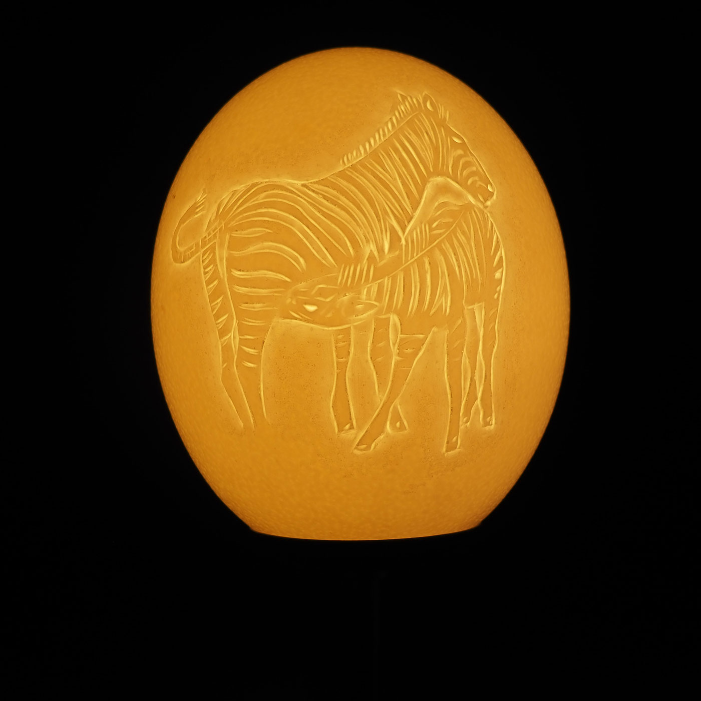 Alle Zebra Fans werden ihre Freude an dieser Straußenei Lampe haben. Auf dem Ei werden zwei Zebras dargestellt. Durch die hellen / dünneren Stellen der Eierschale scheint das Licht sanft durch und taucht den Raum in ein gemütliches Licht.