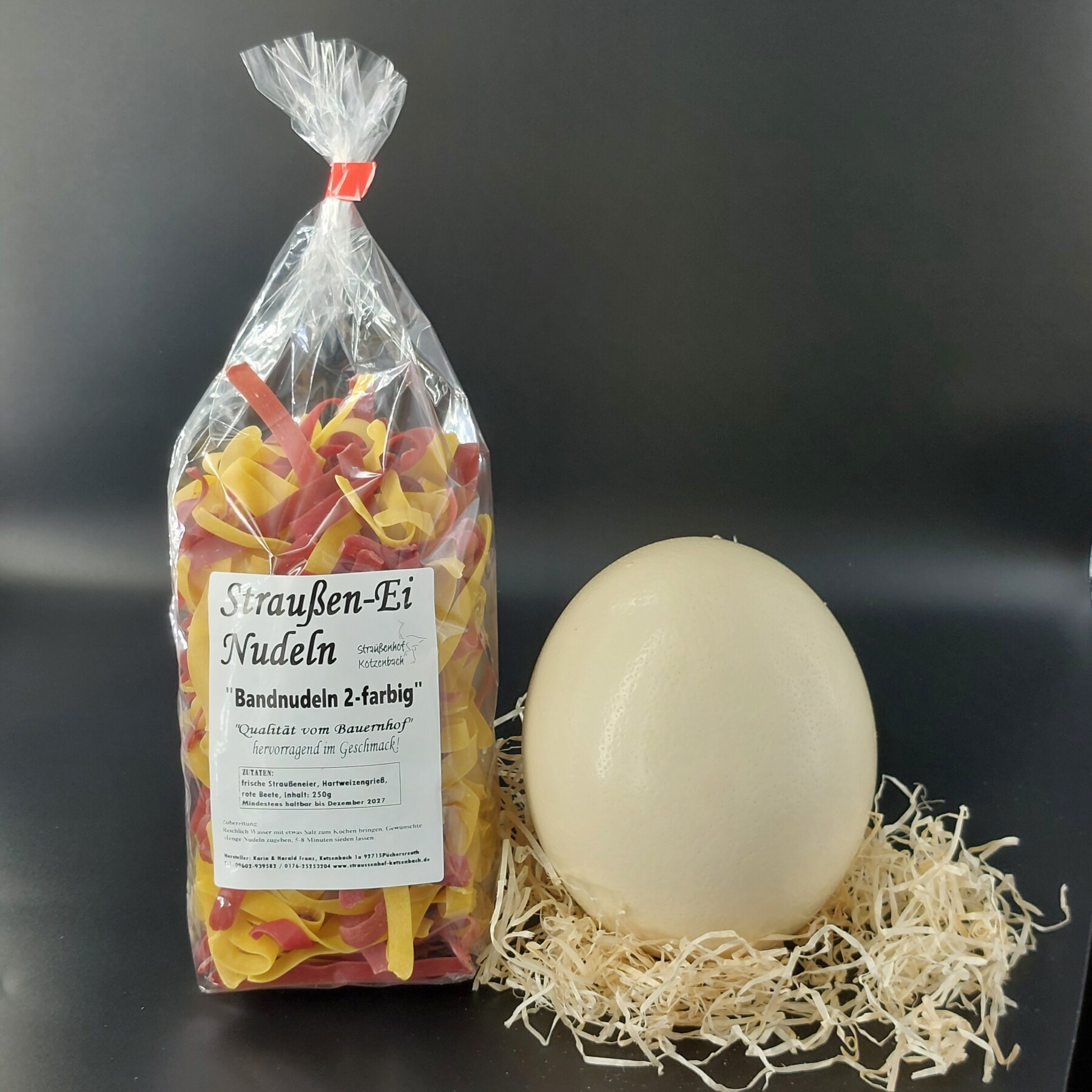 Entdecken Sie unsere exquisiten Straußenei Nudeln mit Spinat und feiner roter Beete. Diese einzigartigen Teigwaren vereinen die reichhaltige Textur von Straußeneiern mit dem Geschmack der roten Beete sowie vom Spinat. Ideal für kreative Gerichte und ein echter Blickfang auf jedem Teller. Genießen Sie eine köstliche und gesunde Alternative zu herkömmlichen Nudeln!