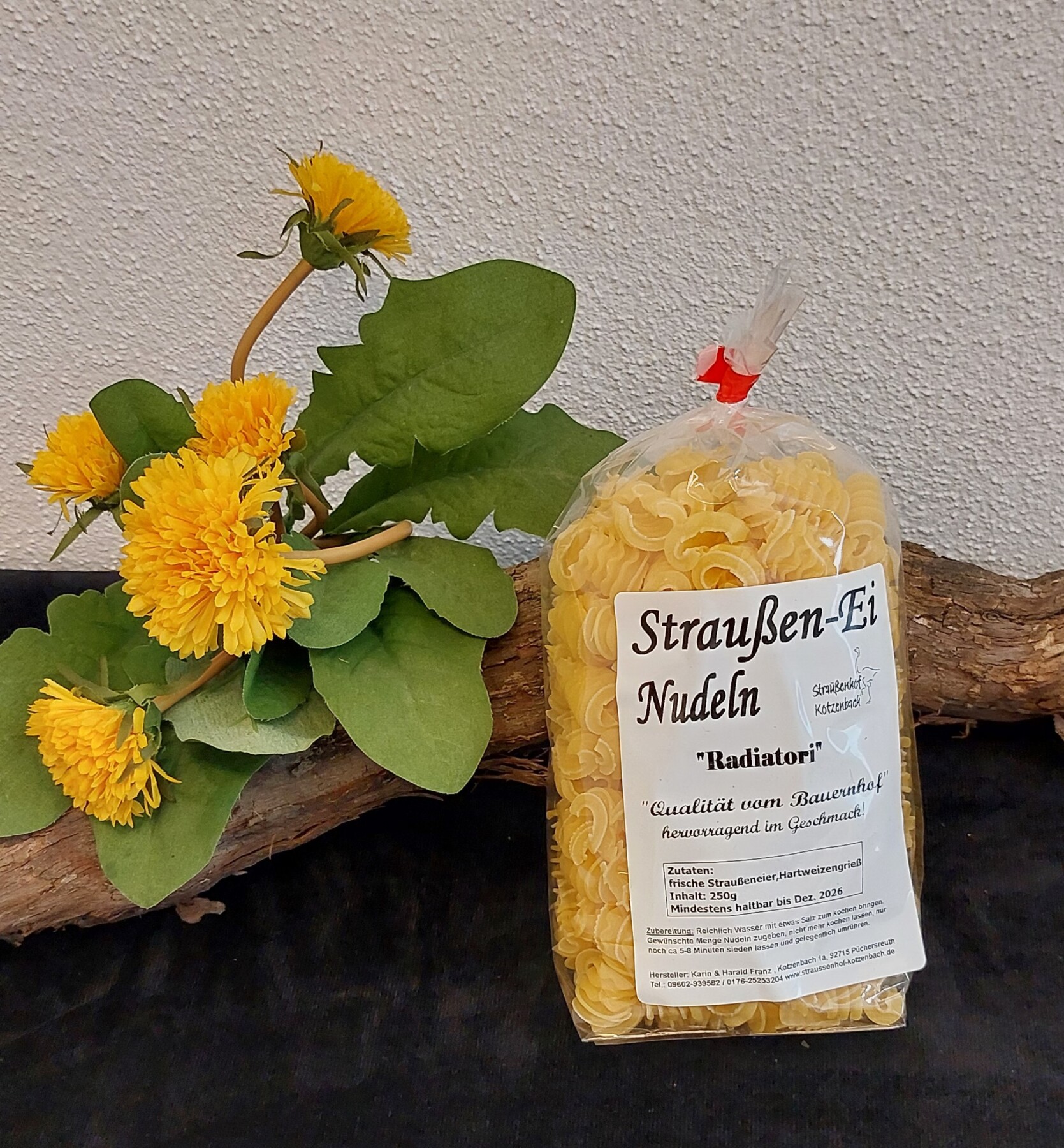 Qualität vom Bauernhof. Unsere Straußeneier Nudeln bleiben beim Kochen schön in Form und munden am Besten bissfest gekocht.