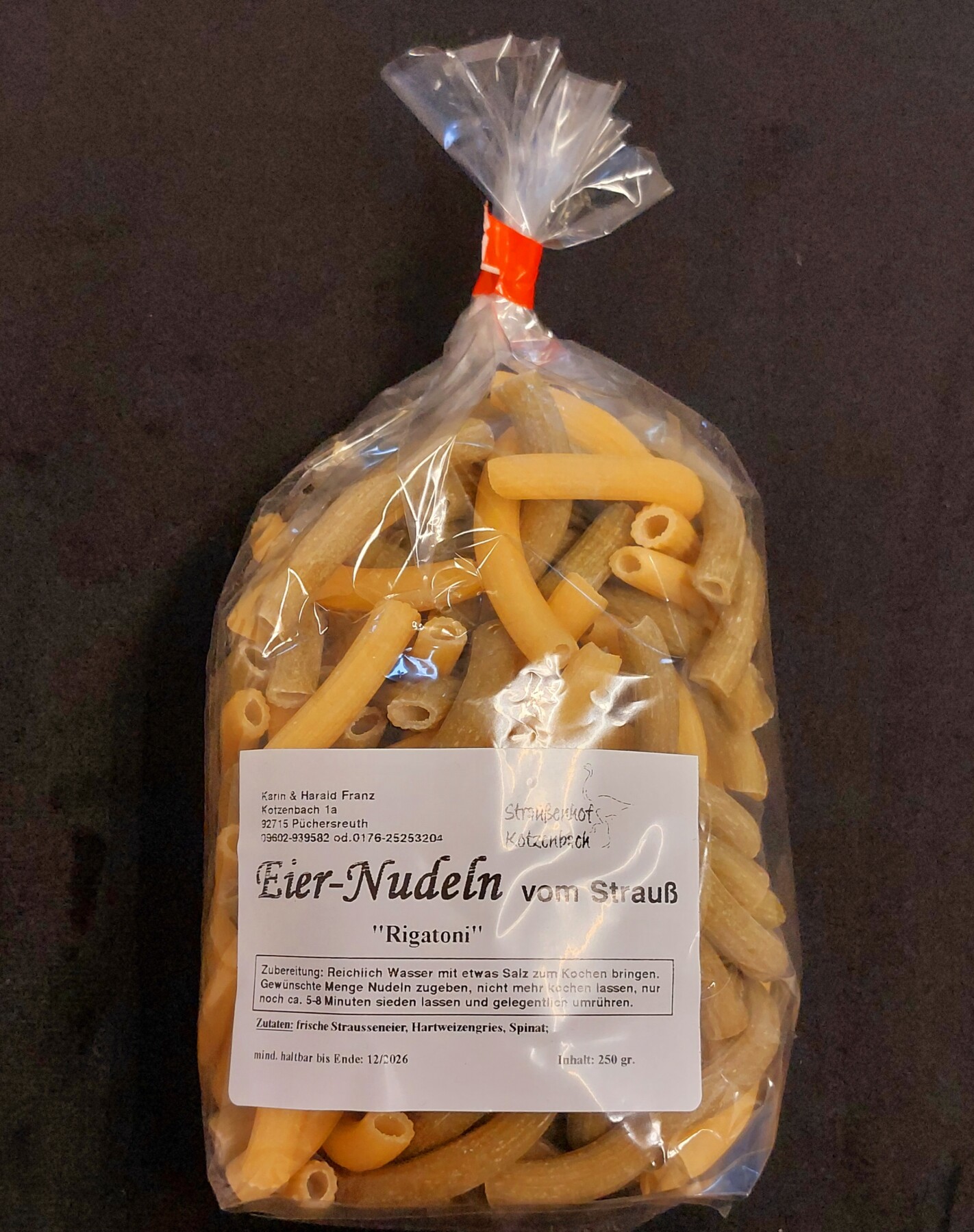 Zutaten: Straußeneier, Hartweizengrieß, Meersalz, (wahlweise mit Spinat)
