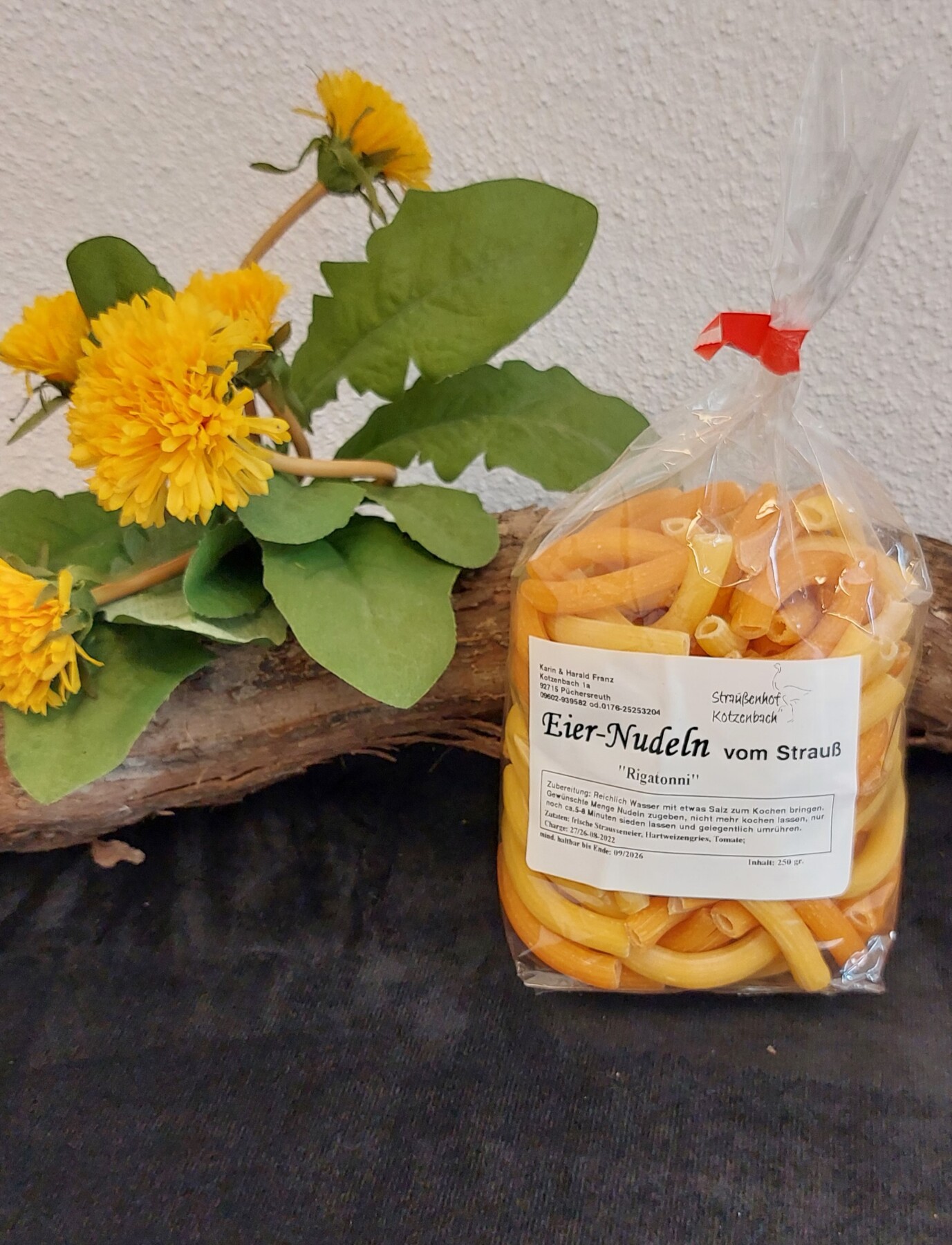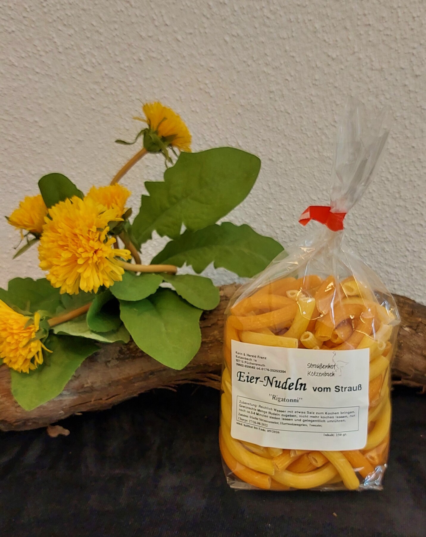 Qualität vom Bauernhof. Unsere Straußeneier Nudeln bleiben beim Kochen schön in Form und munden am Besten bissfest gekocht.