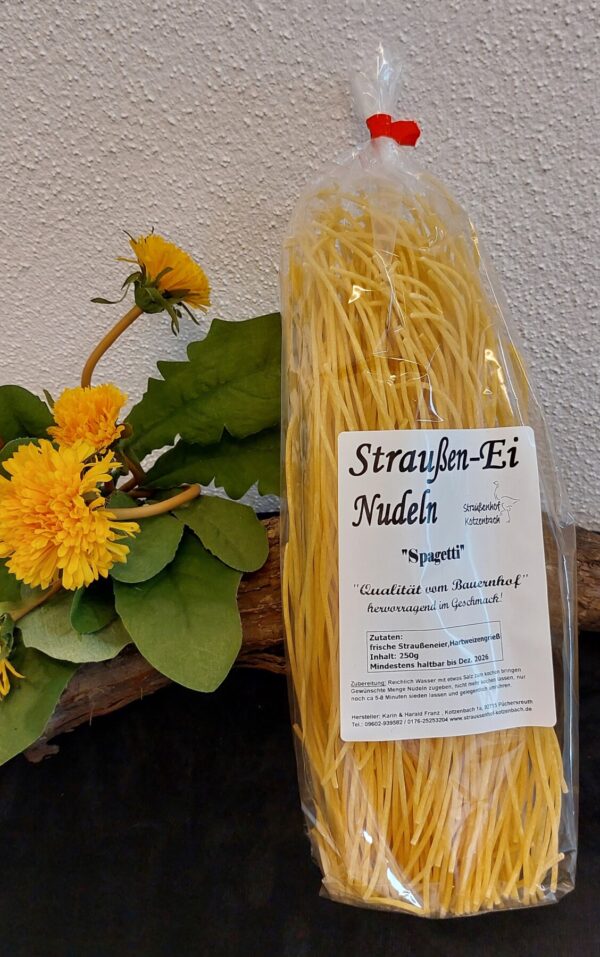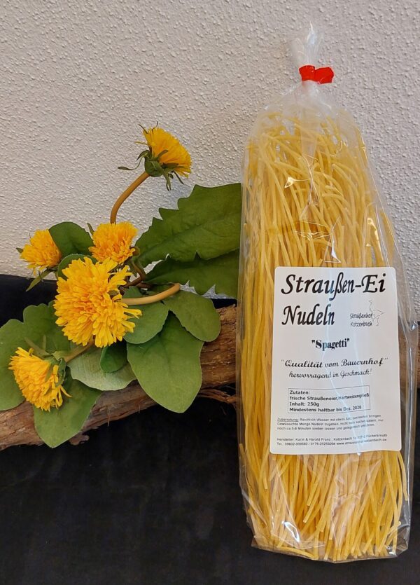 Entdecken Sie unsere exquisiten Straußenei Nudeln Spagetti (und feiner roter Beete). Diese einzigartigen Teigwaren vereinen die reichhaltige Textur von Straußeneiern mit dem erdigen Geschmack der roten Beete. Ideal für kreative Gerichte und ein echter Blickfang auf jedem Teller. Genießen Sie eine köstliche und gesunde Alternative zu herkömmlichen Nudeln!