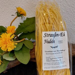 Die Garzeit für ein hart gekochtes Straußenei beträgt je nach Größe zwischen 75 und 90 Minuten. Ebenso lässt sich köstlicher Eierlikör und Nudeln verschiedenster Art aus Straußeneiern herstellen.