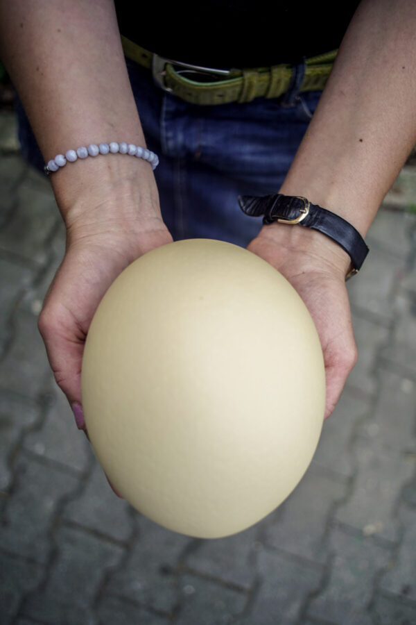 Ein gigantisches Ei für die ganze Familie – frisch gelegt von unseren Straußendamen.