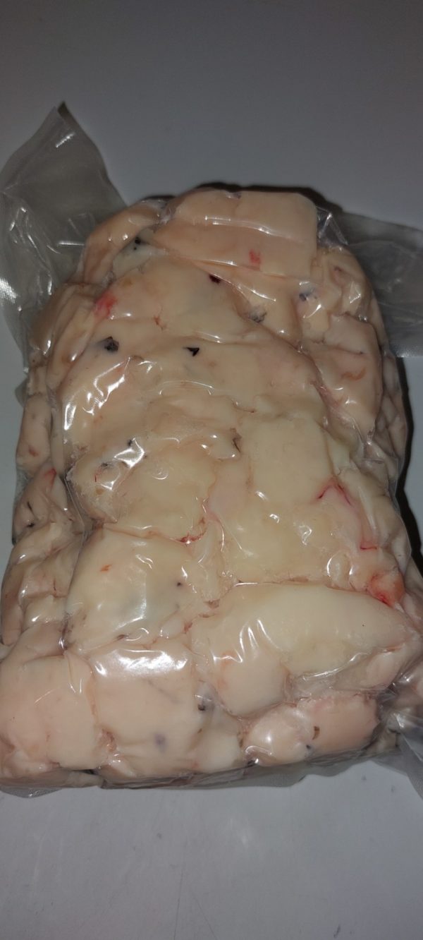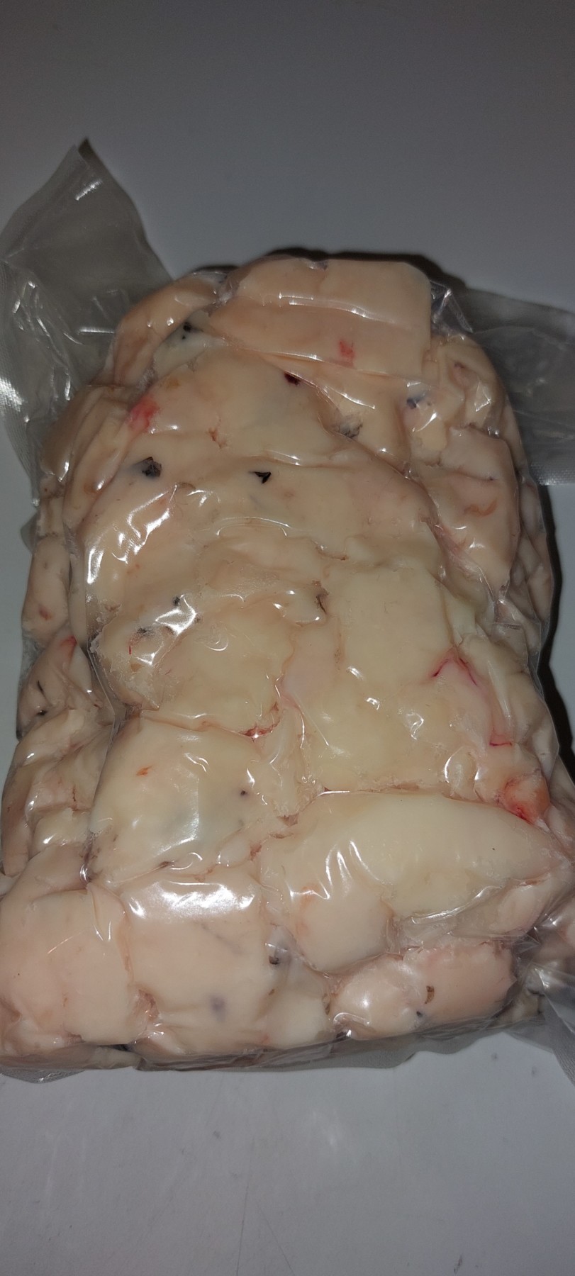 Im Rohzustand grob gewolft abgepackt und tiefgefroren.