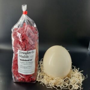 Straußeneiernudeln und viele weitere Produkte wie Staubwedel, Straußenfett, Straußenknochen, Straußenseife, Kosmetikprodukte vom Strauß gibts bei uns im Shop.